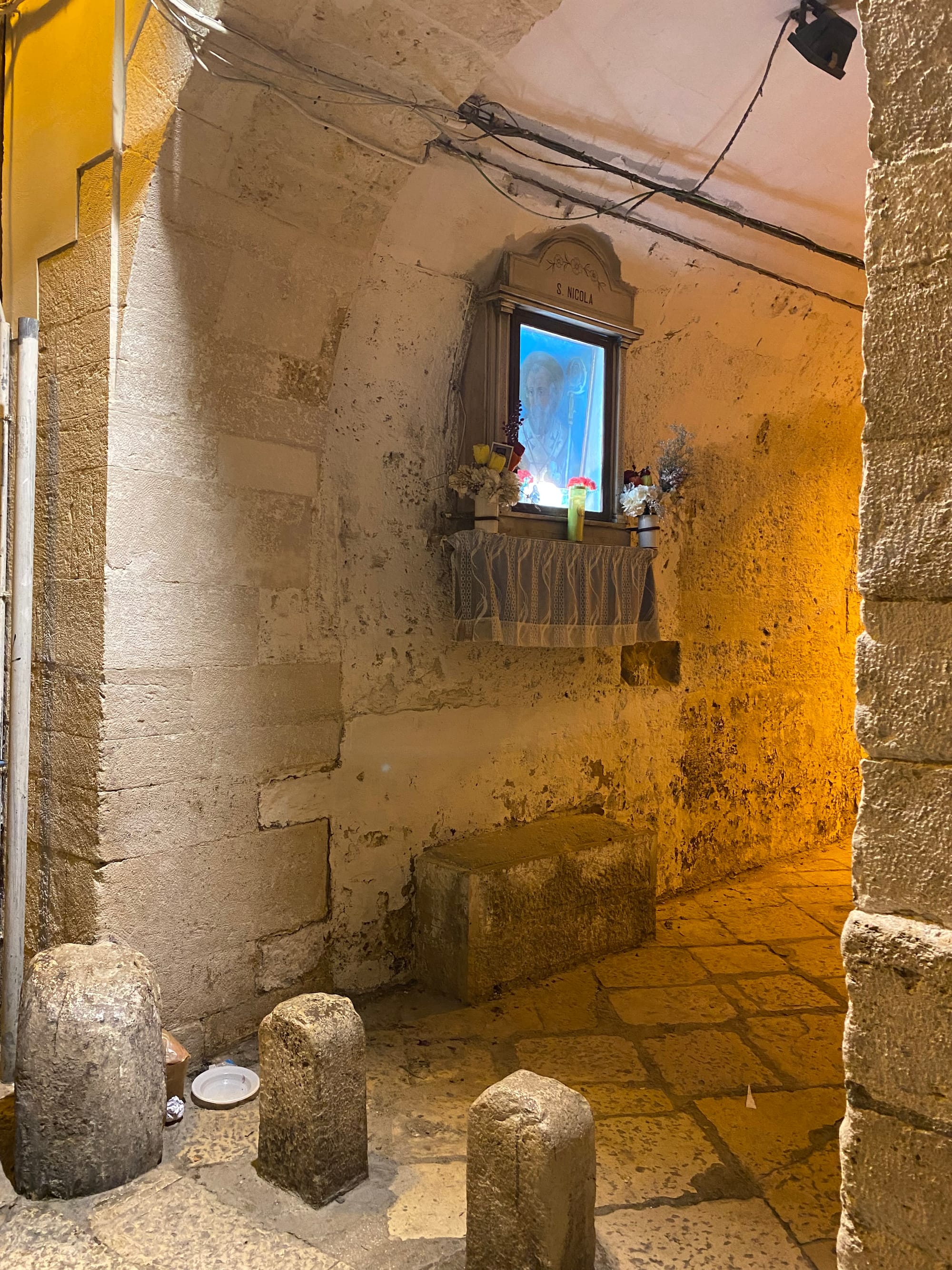 После работы поехали на автобусе до старого Бари – исторического центра города, там прогулялись с начала по набережной, встретились с Олей и Катей – наши товарищи по атлантическим морским практикам и помощники в предстоящем переходе до и по Хорватии, потом пошли в сам старый центр и зашли в несколько замечательных храмов, самый известный – церковь св. Николая, того, которого в православии называют Николаем Чудотворцем. Все-таки чувствуется, что Бари находится где-то на границе между православием и католицизмом, Востоком и Западом, очень много элементов в украшении храмов и в архитектуре отсылают к Востоку.