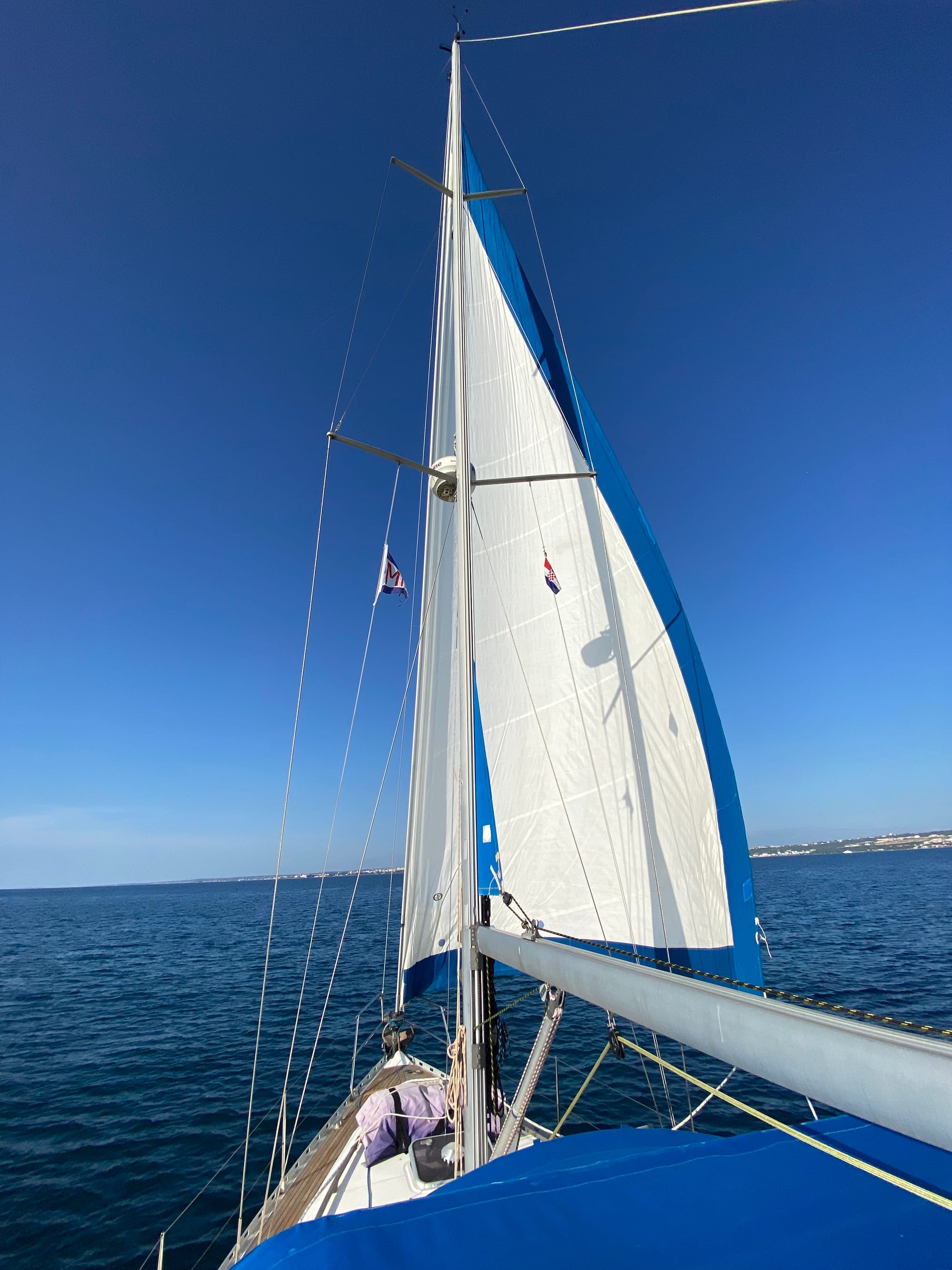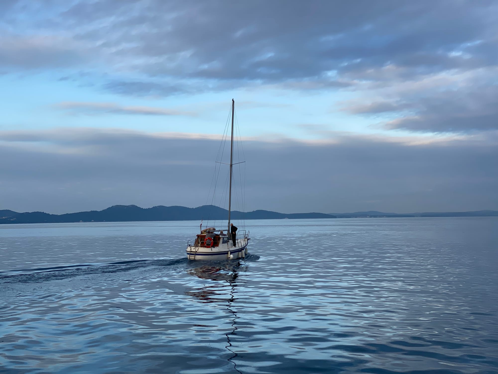 1535 снялись с якоря. Небольшой ветерок, развернул лодку и открыл геную, бакштаг левого галса. До Задара 4,5 мили.