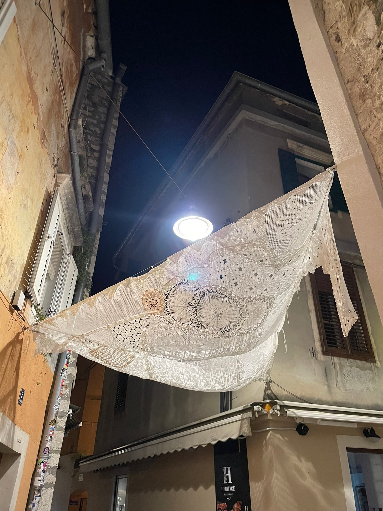 Вечером все вместе еще прошлись по городу и посмотрели, что к чему – маленький симпатичный городок, вдается в море парой скалистых мысов, некоторые дома на скалах стоят прямо над водой. Еще тут есть монструозные сооружения для ловли рыбы – трабукко – платформы с множеством торчащих из них палок или стержней, похожие на устройства для пыток или казней, такие они ассоциации вызывают в закатном красном свете. По городку приятно было погулять, людей немного, но не выглядит заброшенно, в одной церкви мы услышали пение хора и зашли послушать репетицию. Правда, из-за скалистости приходится подниматься вверх-вниз.