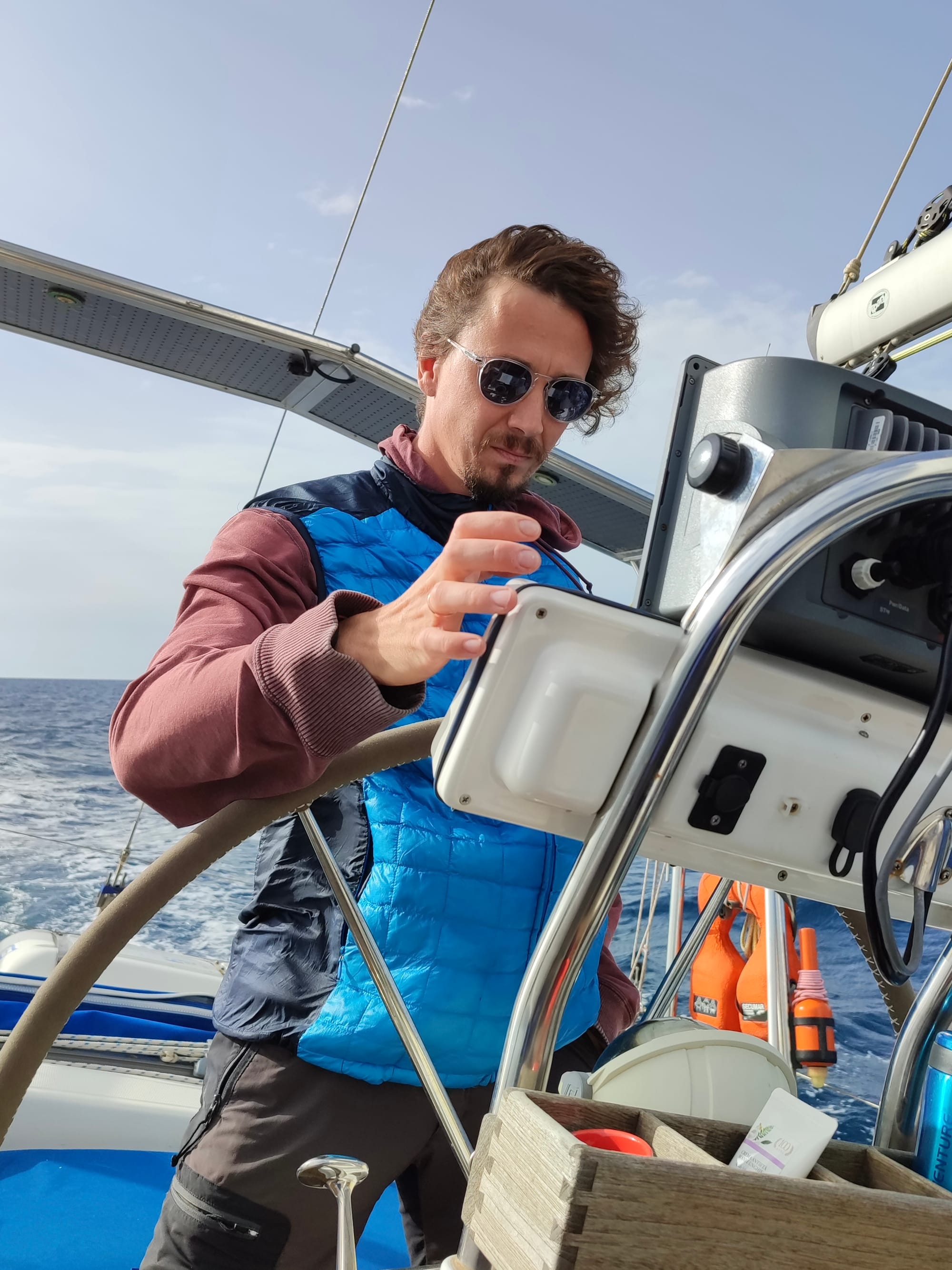 1550 ветерок бодрый, в районе 8-10 узлов, немного поворачивает и мы вместе с ним возвращаемся на нужный курс. Оля на вахте, я пошел отдохнуть. Теперь идем по курсу а не по ветру.